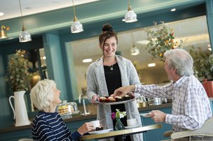 The home is surrounded by peaceful, landscaped gardens featuring a water feature and bowling green, offering residents tranquil outdoor spaces to relax and enjoy fresh air. Inside, amenities include an in-house beauty salon, a stylish café, vibrant communal lounges, and a deluxe cinema, creating opportunities for socialising, leisure, and personal enrichment.
