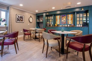 Situated in the charming market town of Ampthill, Richmond Manor features thoughtfully designed facilities that combine comfort, luxury, and practicality. Residents can relax in St George’s Café, a standout space with an iconic stained-glass window salvaged from the original building, serving a selection of beverages and delicious treats throughout the day. The home also offers a private, fully stocked bar, a deluxe in-house cinema, and a Wellbeing and Beauty Salon providing hairdressing, manicures, and other treatments. Spacious lounges lead to a private courtyard, and multiple quiet areas throughout the home offer peaceful spaces for reflection or relaxation.
