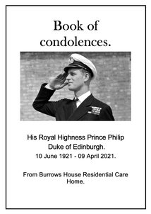 Burrows Houses' Activities Coordinator and Deputy Manager completed a book of condolences with their residents which has been sent to the Queen. Resident, Dorothy, said 'Prince Philip is one of the best. A kind man, a good father, we will remember him fondly. We send our condolences to The Royal Family.'.