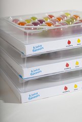 - Each tray of 24 sweets contains 6 flavours: strawberry, raspberry, blackcurrant, orange, lime and lemon.